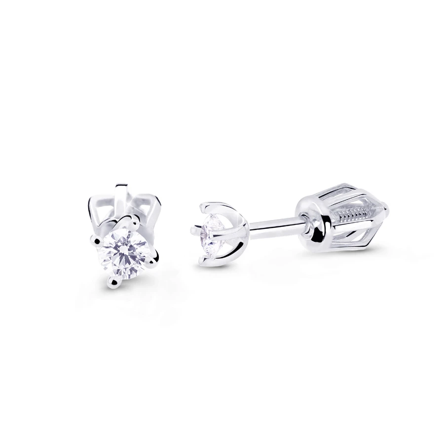 Náušnice z bílého zlata ryzosti 585/000. Jednoduché zlaté pecky se zirkony se zapínáním na šroubek. Průměr ozdoby se zirkonem 4mm.