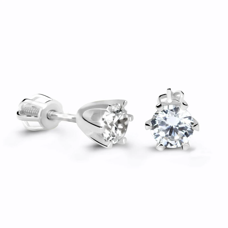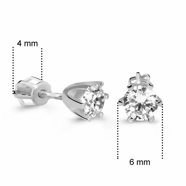 Zlaté náušnice pecky se zirkony vyrobené z bílého zlata ryzosti 585/000. Zlaté pecky s průměrem ozdoby 6 mm. Náušnicové zapínání na je na šroubek. Průměr šroubovacího zapínání 4 mm.