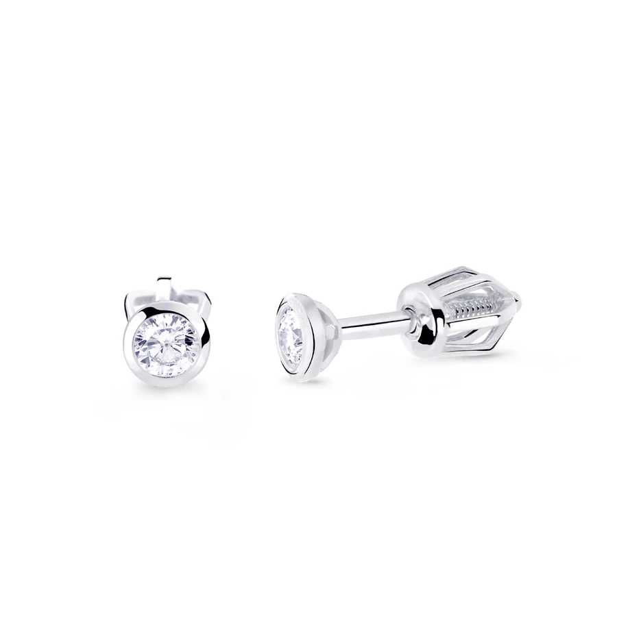 Náušnice z bílého zlata ryzosti 585/000. Jednoduché zlaté pecky se zirkony se zapínáním na šroubek. Průměr ozdoby se zirkonem 4mm.
