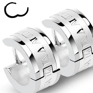 Náušnice kroužky z chirurgické oceli. Kruhové náušnice se vzorem římských čísel 7mm, vnější průměr náušnic 13mm.