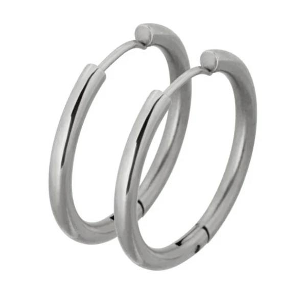Kruhové náušnice z chirurgické oceli. Povrch náušnic je leštěný. Vnitřní průměr náušnic 16mm, vnější průměr 21mm. Tloušťka 2,5mm. Náušnicové zapínání je kloubové. Uvedená cena platí za pár.