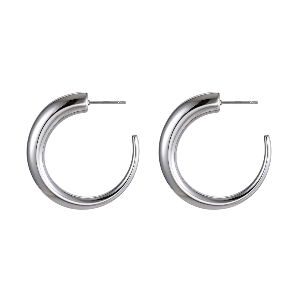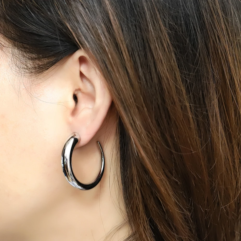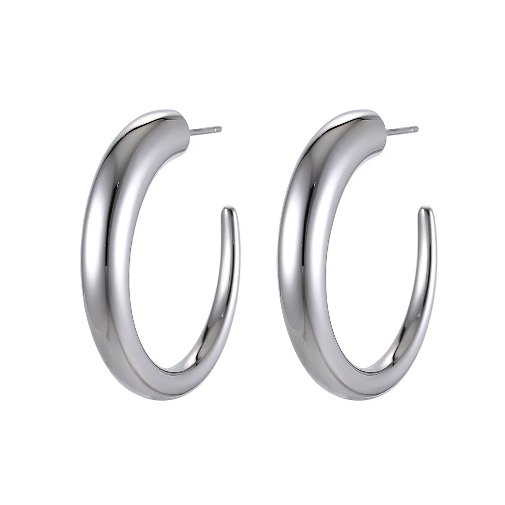 Masivní kruhové náušnice z chirurgické oceli. Náušnice jsou "duté" a i přes jejich rozměry se pohodlně nosí. Vnější průměr náušnic 35mm, náušnice je v nejširším bodě u ucha široká 7mm a postupně se zužuje na 2,5mm . Náušnicové zapínání je na puzety.