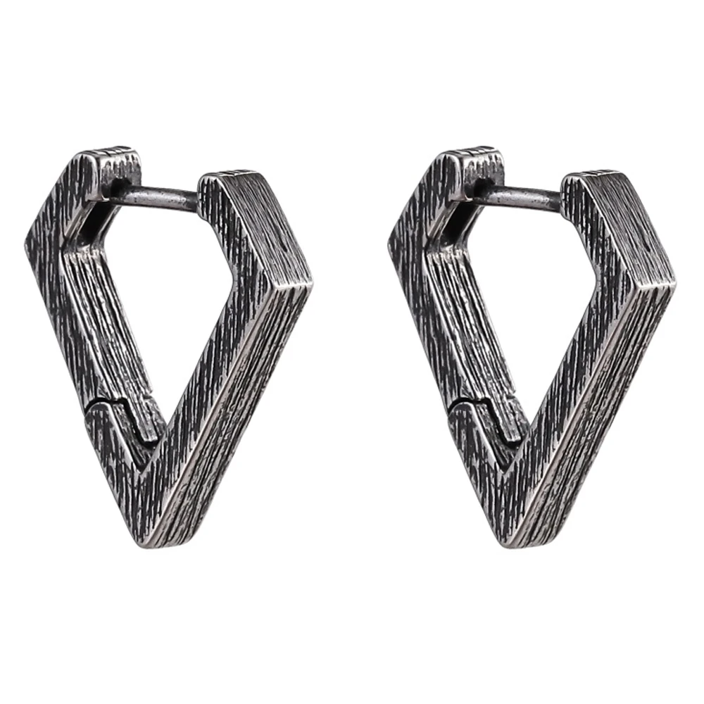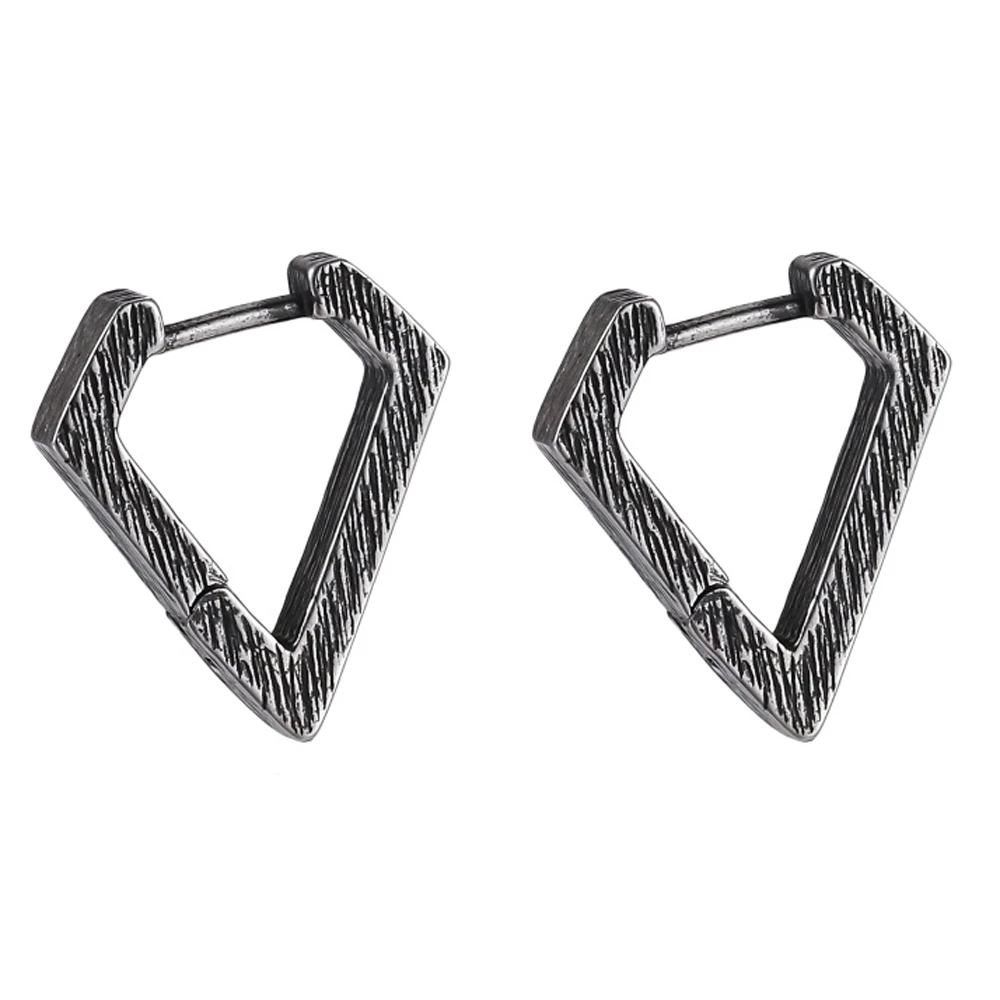 Náušnice ve tvaru trojúhelníku z chirurgické oceli. Povrch náušnic je pokrytý plastickým vzorem. Rozměry náušnic 18x16x3mm. Náušnicové zapínání je kloubové.