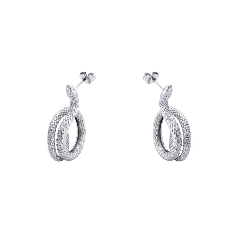 Hadí náušnice z chirurgické oceli. Povrch náušnic je pokrytý realistickými šupinami. Náušnice jsou dlouhé 33mm. Náušnicové zapínání je na puzetky.