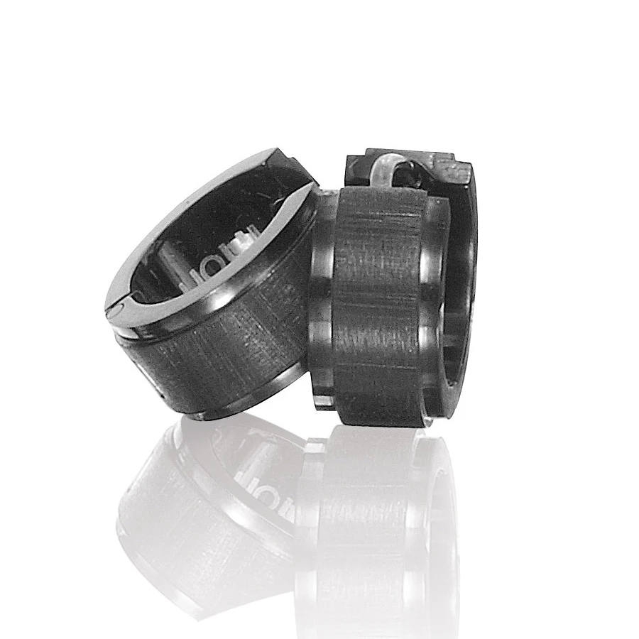 Náušnice kroužky z chirurgické oceli. Náušnice jsou upravené černou PVD barvou. Náušnice jsou široké 6mm, vnější průměr náušnic 13mm, vnitřní průměr 9mm. Náušnicové zapínání je na kloub. Cena je uvedena za pár.