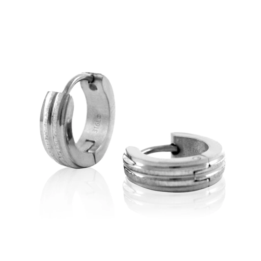 Náušnice kroužky z chirurgické oceli. Povrch náušnic je kombinace mat/lesk. Náušnice jsou široké 4mm, vnější průměr náušnic 13mm. Náušnicové zapínání je na kloub. Uvedená cena platí za pár.