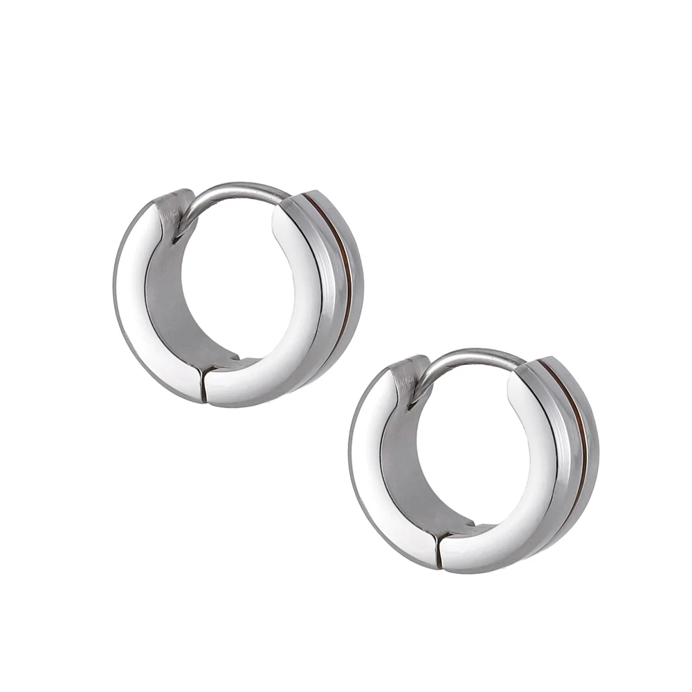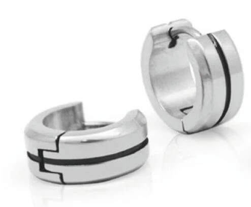 Náušnice kroužky z chirurgické oceli. Povrch náušnic je leštěný s černou linkou. Náušnice jsou široké 6mm, vnější průměr náušnic 13mm. Náušnicové zapínání je na kloub. Uvedená cena platí za pár.