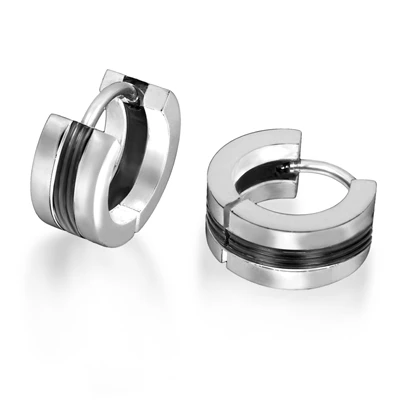 Náušnice kroužky z chirurgické oceli. Povrch náušnic je kombinace leštěné oceli a černé barvy PVD. Náušnice jsou široké 6mm, vnější průměr náušnic 14mm. Náušnicové zapínání je na kloub. Uvedená cena platí za pár.
