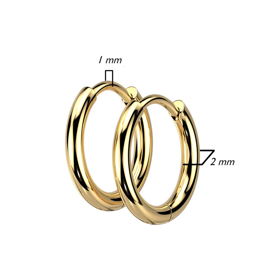 Náušnice kroužky z chirurgické oceli. Povrch náušnic je leštěný. Vnější průměr náušnic 14mm, vnitřní průměr 10mm. Rozměry kroužků najdete zobrazené na podpůrné fotografii.