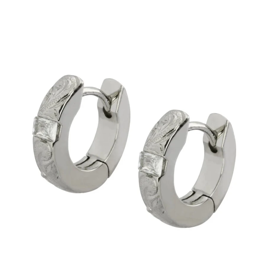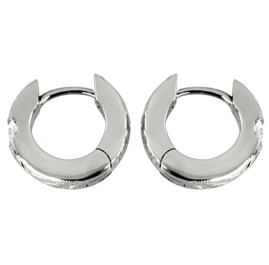 Náušnice se zirkonem kroužky. Náušnice jsou vyrobené z chirurgické oceli a osazené prvotřídními zirkony. Povrch náušnice je leštěný zdobený gravírovaným vzorem. Náušnicové zapínání je na kloub. Vnější průměr kroužku 13mm, vnitřní průměr 8mm, šířka náušnic 3mm. Uvedená cena platí za pár.