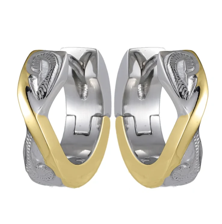 Náušnice kroužky z chirurgické oceli. Povrch náušnice je částečně pozlacený technologií PVD. Náušnicové zapínání je na kloub. Vnější průměr kroužku 13mm, vnitřní průměr 8mm, šířka náušnic 4mm. Uvedená cena platí za pár.