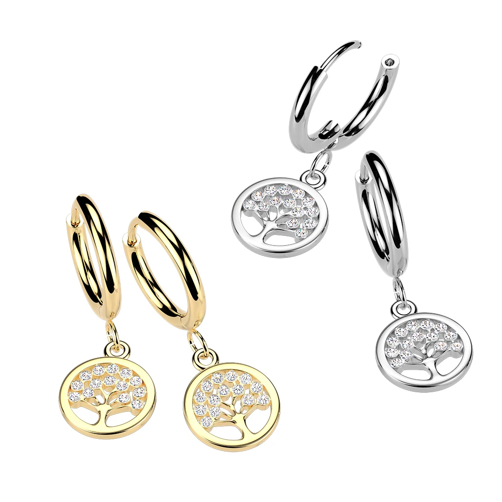 Náušnice z chirurgické oceli kroužky se stromem života SESE5135