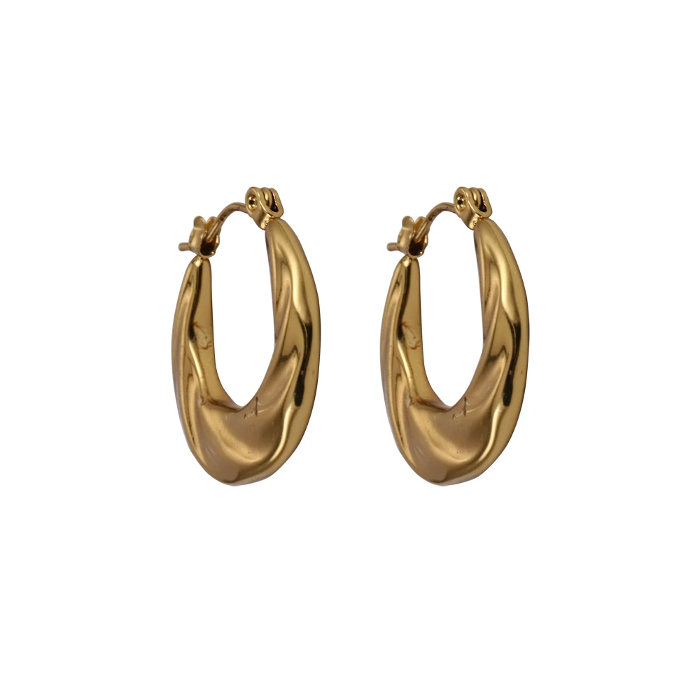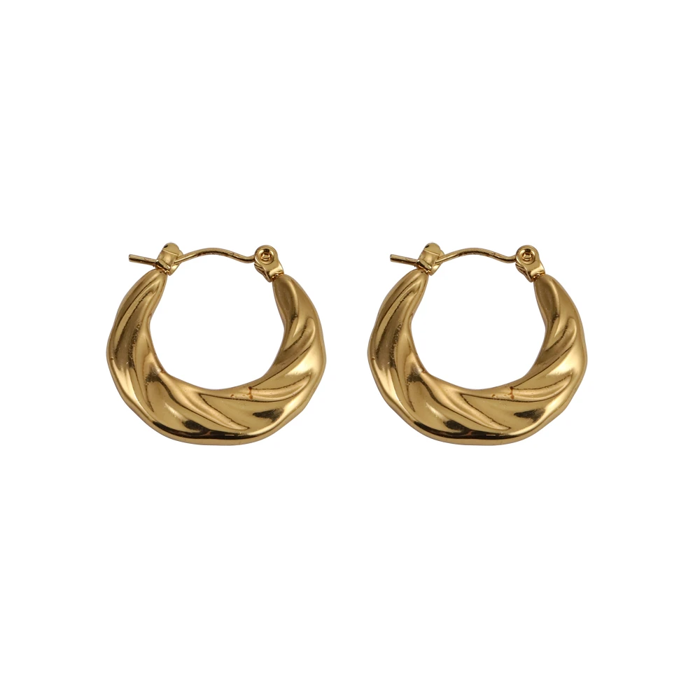 Náušnice z chirurgické oceli kruhového tvaru. Povrch náušnic je leštěný, pozlacený technologií PVD. Náušnice mají vnější průměr 22mm. Náušnicové zapínání je na francouzský zámek.