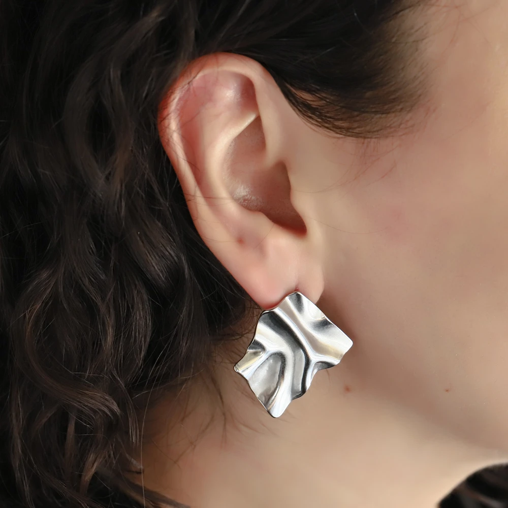 Moderní dámské náušnice z chirurgické oceli. Povrch náušnic je leštěný. Rozměr náušnic 34x32mm. Náušnicové zapínání je na puzety. Uvedená cena je za pár.