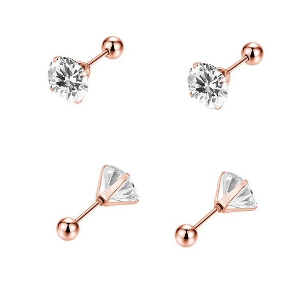 Náušnice z chirurgické oceli se zapínáním na šroubek, dřík má průměr 1,0mm, šroubovací kulička má průměr 4mm. Povrch náušnice je pozlacený technologií PVD. Díky zapínání se šroubovací kuličkou náušnice netlačí a pohodlně se nosí. Průměr bílého zirkonu 3mm. Uvedená cena platí za pár.