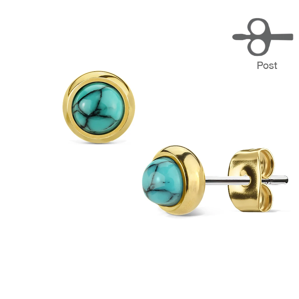 Náušnice z chirurgické oceli pecky s kamenem. Průměr ozdoby 6mm. Náušnice se zapínají pomocí puzet. Dřík pro puzety má průměr 0,8mm.