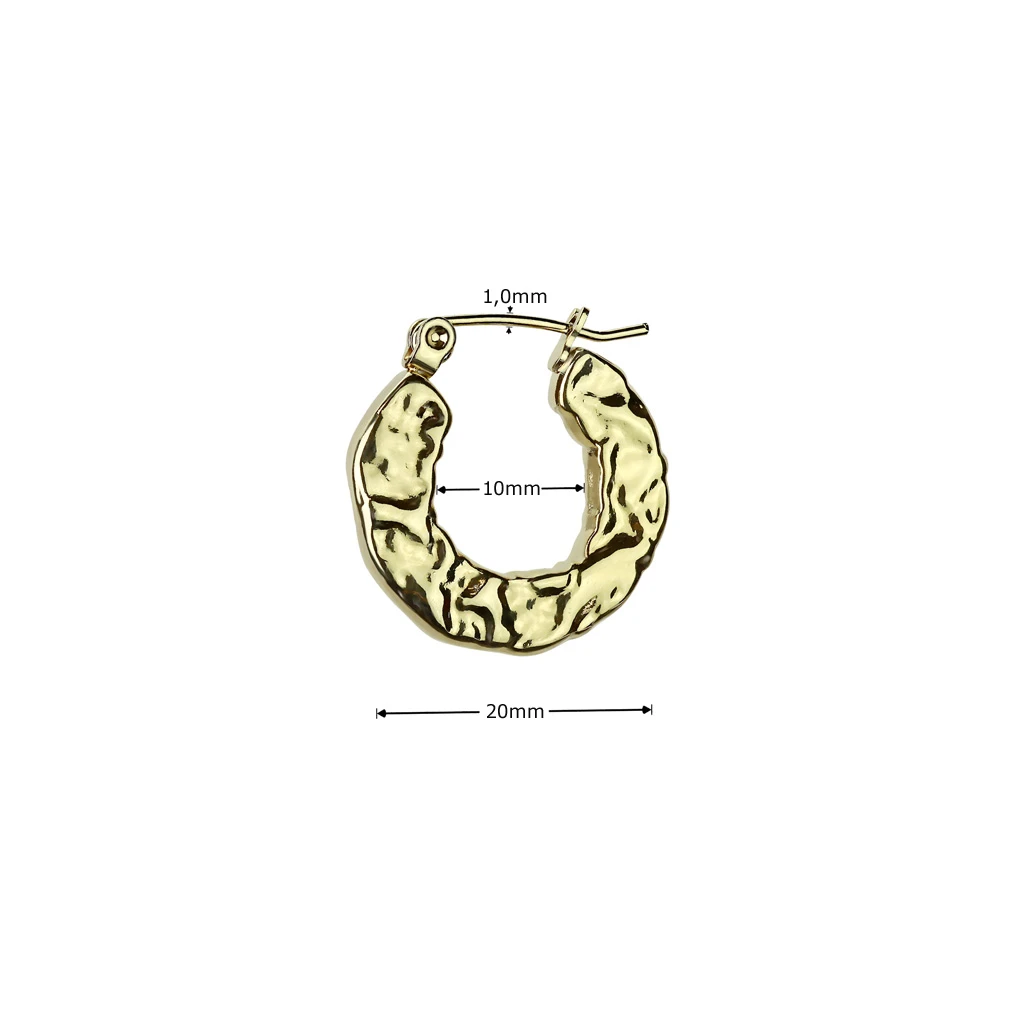 Kruhové náušnice z chirurgické oceli. Povrch náušnic je leštěný. Náušnicové zapínání je kloubové. Vnitřní průměr náušnic 10mm, vnější průměr 20mm. Tloušťka dříku zapínání 1,0mm.