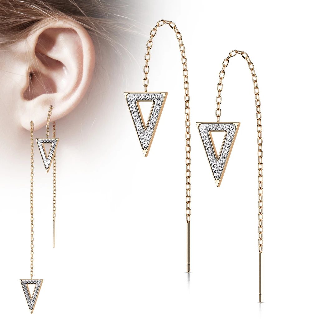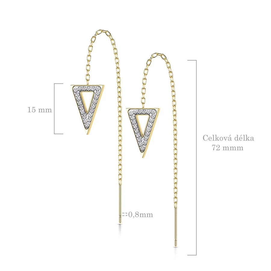 Visací ocelové náušnice se zirkony. Celková délka náušnice s řetízkem 72mm. Rozměry náušnic najdete zobrazené na podpůrné fotografii.