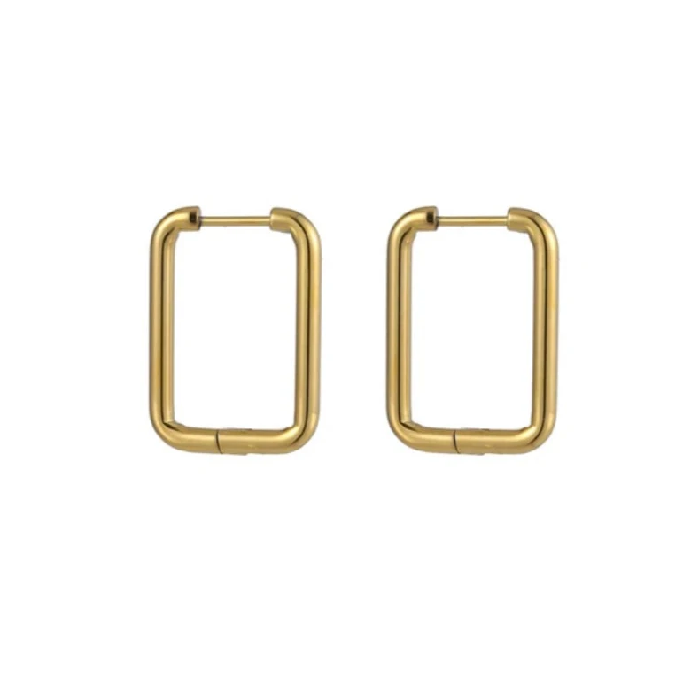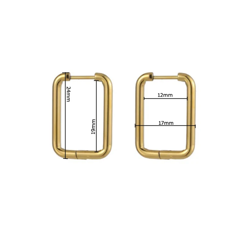 Náušnice z chirurgické oceli visací ve tvaru obdélníku. Povrch náušnic je leštěný. Náušnice jsou široké 17mm, dlouhé 24mm. Všechny rozměry náušnic najdete na podpůrné fotografii. Zapínání náušnic je kloubové. Cena je uvedena za pár.