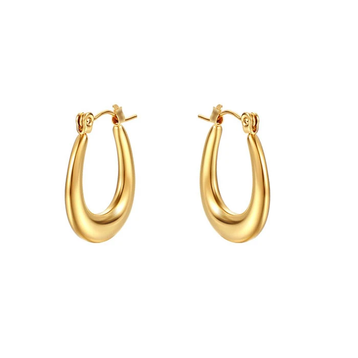 Visací náušnice z chirurgické oceli oválného tvaru. Povrch náušnic je leštěný pozlacený technologií PVD. Náušnicové zapínání je na francouzský zámek. Velikost náušnic 20mm najdete zobrazenou na podpůrné fotografii.