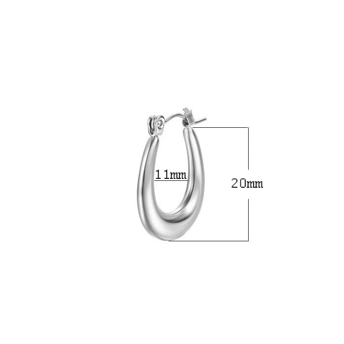 Visací náušnice z chirurgické oceli oválného tvaru. Povrch náušnic je leštěný. Náušnicové zapínání je na francouzský zámek. Velikost náušnic 20mm najdete zobrazenou na podpůrné fotografii.