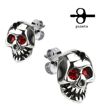 Náušnice z chirurgické oceli 316L. Náušnice mají tvar lebky. Povrch náušnic je leštěný s černěním. Rozměr náušnic 11*8mm. Náušnice se zapínají na puzetu. Uvedená cena za 1 pár.
