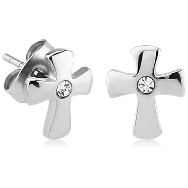 Náušnice z chirurgické oceli 316L. Náušnice mají leštěný povrch. Náušnice mají zapínání na puzetu. Náušnice jsou ozdobené kamínkem. Rozměr náušnic: 10*8mm.