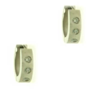 Náušnice vyrobené z chirurgické oceli. Náušnice mají broušený povrch. Náušnice jsou ozdobeny 3 zirkony. Vnitří průměr náušnice 9mm, šířka náušnice 4mm. Uvedená cena za 1 pár.