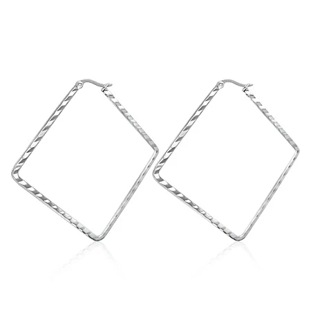 Náušnice z chirurgické oceli 316L. Náušnice s leštěným, vzorovaným povrchem. Náušnice mají tvar čtverce. Náušnice jsou široké 2,2mm. Rozměr náušnic: 50*50mm.
