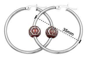 Náušnice z chirurgické oceli 316L. Náušnice mají leštěný povrch. Náušnice jsou široké 2mm. Průměr náušnic 35mm. Náušnice jsou ozdobené navlečeným barevným ocelovým korálkem o průměru 9mm. Hezké kruhy z oceli.