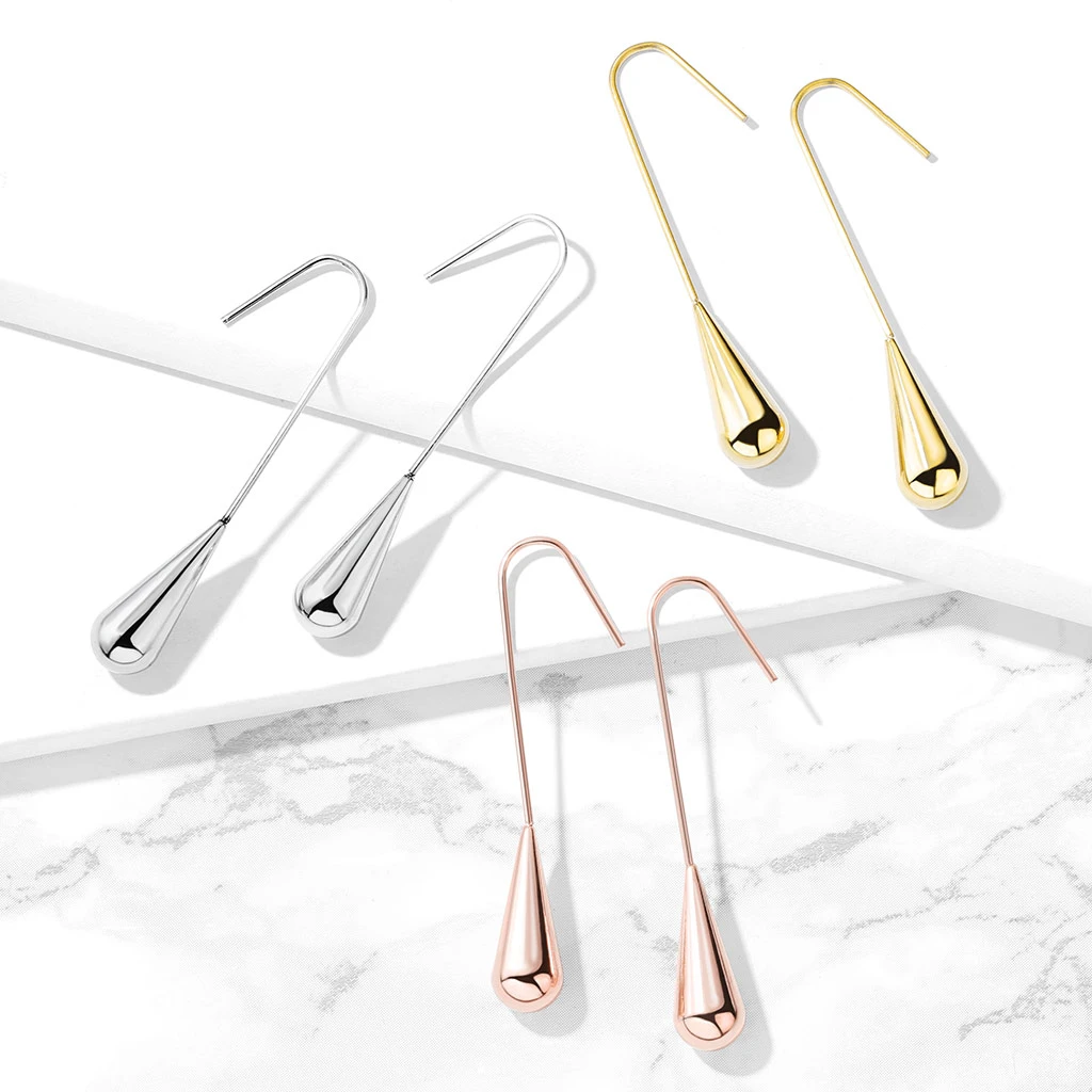 Visací náušnice vyrobené z chirurgické oceli. Náušnice do uší zavěsíte na háček. Povrch náušnic je leštěný.