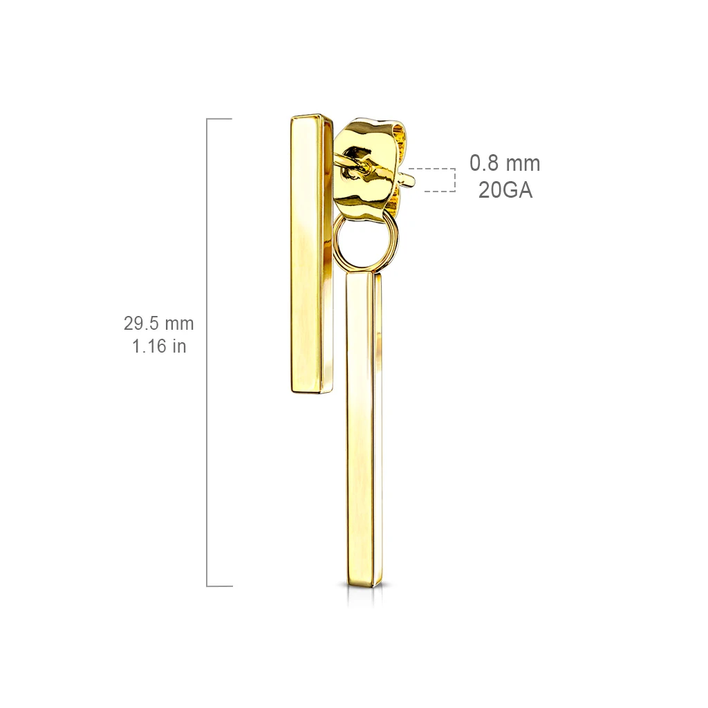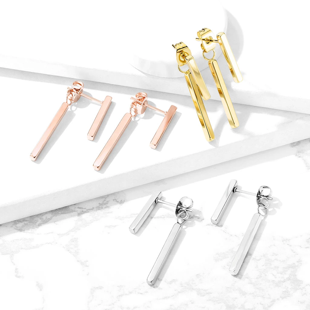 Visací náušnice vyrobené z chirurgické oceli. Náušnice se zapínají pomocí puzetek. Povrch náušnic je leštěný.