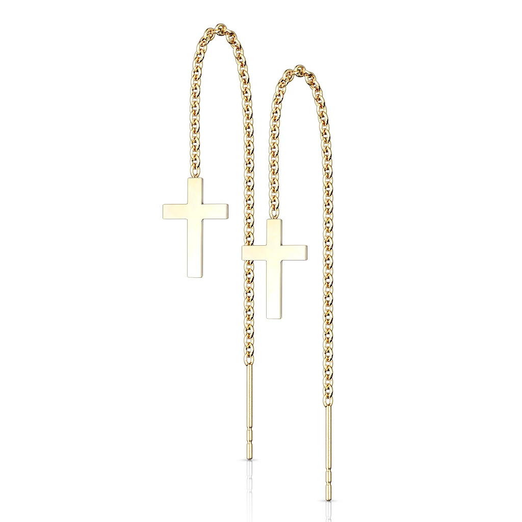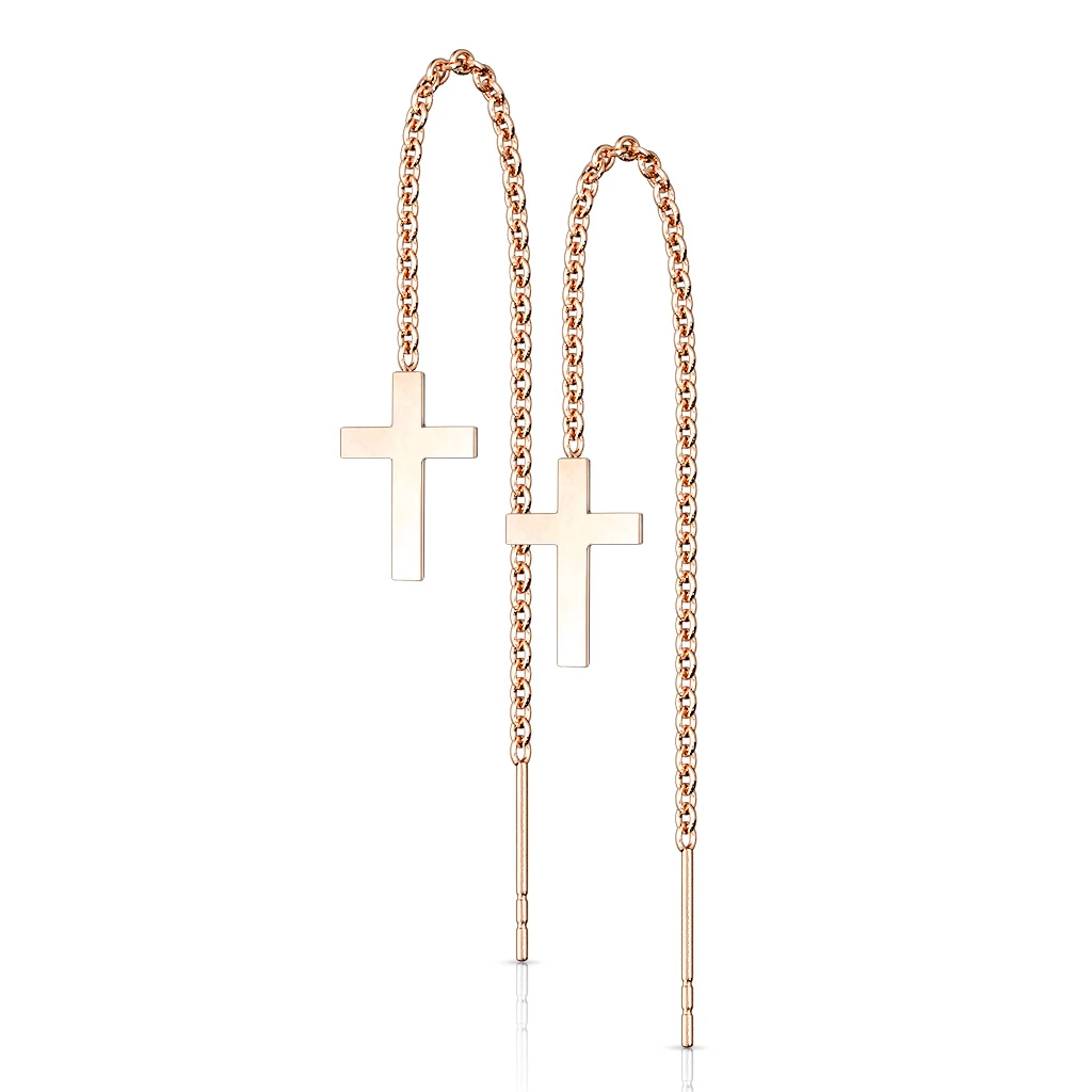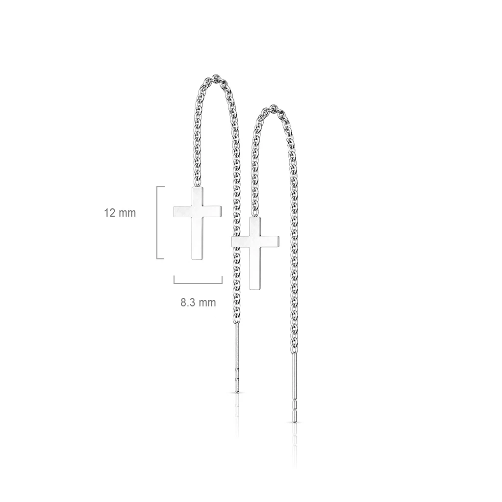 Dlouhé náušnice z chirurgické oceli. Náušnice jednoduše provléknete uchem. Délka náušnic 80mm. Průměr 0,8mm. Rozměr křížku 12x8,3mm.
