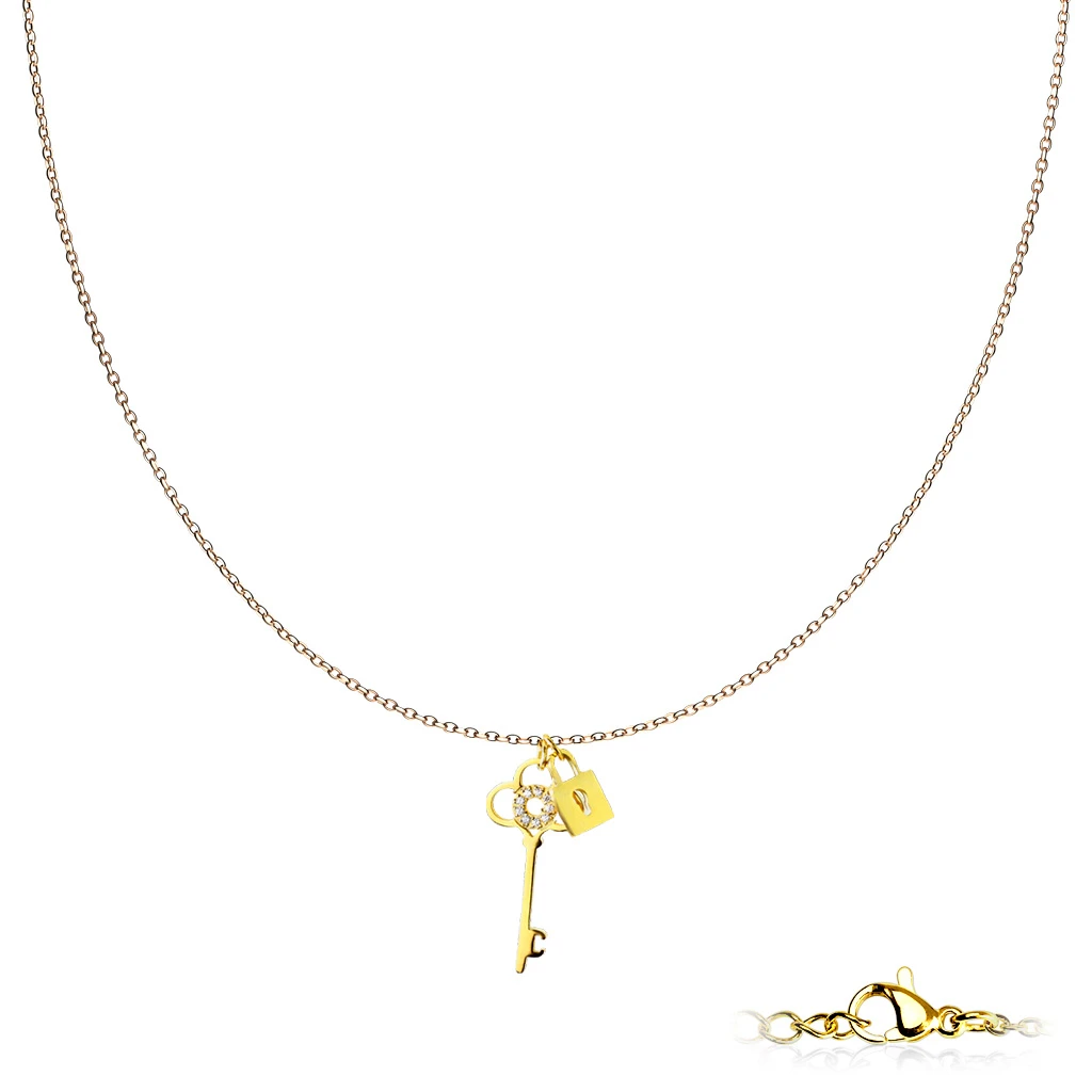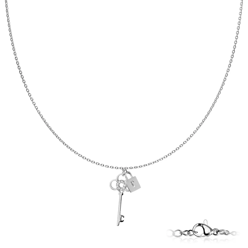 Jemný dámský náhrdelník z chirurgické oceli klíč a zámek.