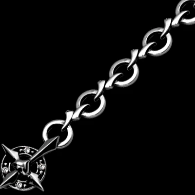 Náramek z chirurgické oceli 316L. Náramek má leštěný povrch. Zapínání náramku je pod ozdobou s křížem. Náramek je ozdobený zirkony. Ozdoba náramku má rozměr: 28*23mm, náramek je široký 11mm.