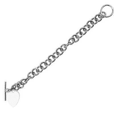 Náramek z chirurgické oceli 316L. Povrch náramku je leštěný. Náramek je složený z kulatých ok o průměru 13mm. Na náramku je zavěšené srdce o rozměru 27*21mm. Náramek má T zapínání. Hezký dámský náramek z chirurgické oceli 316L.