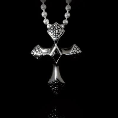 Přívěsek z chirurgické oceli 316L. Přívěsek ve tvaru kříže. Přívěsek je osazený onyxem. Přívěsek má povrch se vzorem hadí kůže. Rozměr přívěsku:27*17mm.