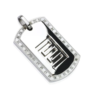 Přívěsek z chirurgické oceli 316L. Přívěsek má leštěný povrch. Přívěsek je ozdobený zirkony. Rozměry přívěsku 42*26mm.