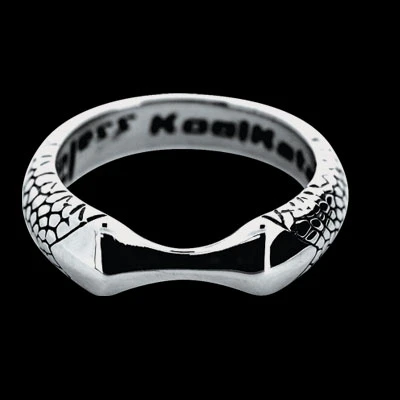 Prsten KoolKatana. Prsten je odlitý z chirurgické oceli 316L. Povrch prstenu je plastický, leštěný s černými detaily. Prsten je široký 6mm. K prstenu dostanete originální semišový sáček s logem KoolKatana.
