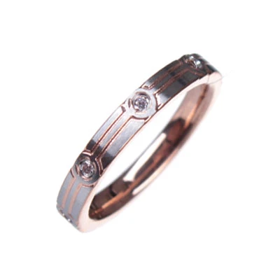 Prsten vyrobený z chirurgické oceli 316l. Povrch je ozdobený zlatými linkami a zirkony. Šíře 3mm. Elegantní dámský prsten, který se díky svému tvaru příjemně nosí.