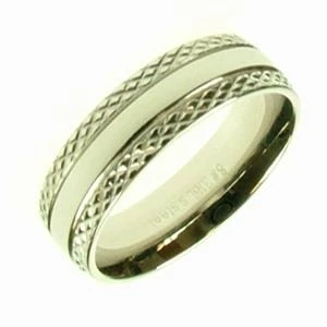 Prsten vyrobený z chirurgické oceli. Jednoduchý prsten. Prsten je po stranách ozdobený rytinou. Povrch prstenu je leštěný.