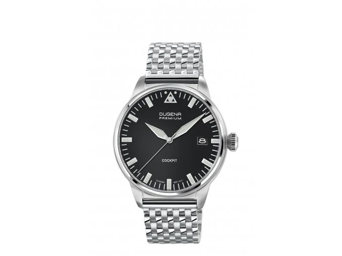 Pánské náramkové hodinky Dugena s ocelovým tahem se zapínáním na sponu, sklíčko hodinek je safírové. Kulatý černý ciferník s indexy. Hodinky jsou vybavené datumkou, hodinovou, minutovou a vteřinovou ručkou. Průměr pouzdra hodinek 42mm, výška pouzdra 12mm. Pouzdro hodinek je vyrobené z leštěné chirurgické oceli. Chod hodinek zajišťuje spolehlivý bateriový strojek. Hodinky jsou vodotěsné na úrovni 5 ATM. Na všechny hodinky Dugena platí záruka v délce 36 měsíců. Hodinky jsou dodávané v dárkové krabičce s logem.