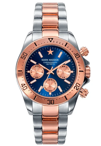 Hodinky pánské Mark Maddox z řady Casual. Kovové pouzdro a náramek. Průměr pouzdra 40mm, kovový náramek je široký 16mm. Pánské hodinky s bateriovým strojkem, hodinovou, minutovou a vteřinovou ručičkou. Dále jsou hodinky vybavené stopkami a ukazatelem celých hodin.