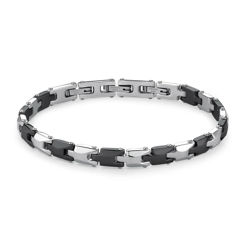 Pánský náramek z kolekce Backliner. Náramek je vyrobený z chirurgické oceli 316l. Povrch náramku je leštěný, černé články jsou upravené technologií PVD. Náramek je dlouhý 20,5cm.