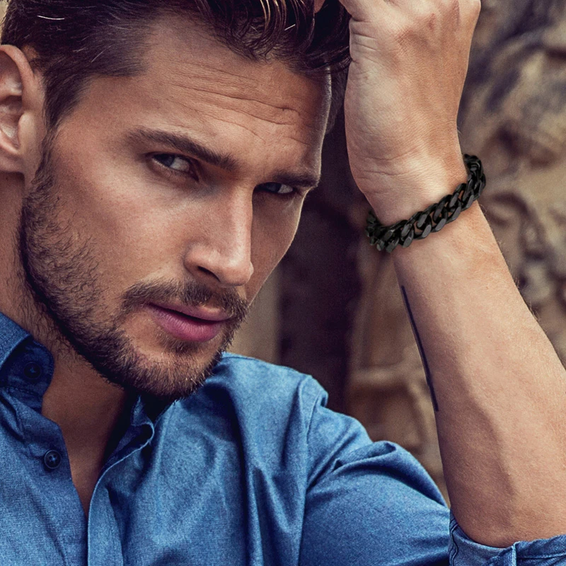 Klasický pánský náramek na ruku z chirurgické oceli. Ocelové náramky i ostatní šperky z tohoto materiálu se stále těší značné oblibě zejména díky vlastnostem, které chirurgická ocel má. K těmto vlastnostem patří především nevyvolávání alergických reakcí, odolnost proti poškození, barevná stálost, šperky z chirurgické oceli neoxidují a jsou dostupné za zlomek ceny ve srovnání se šperky z drahých kovů.