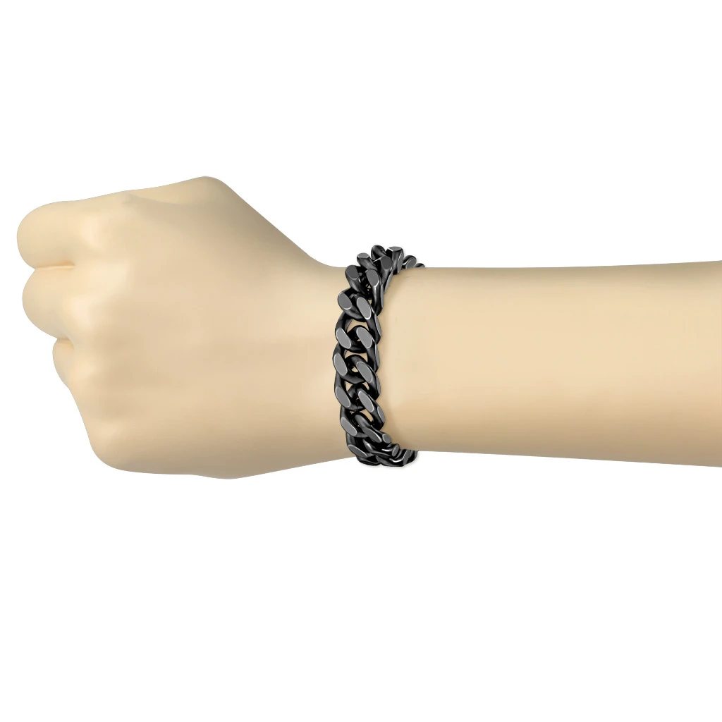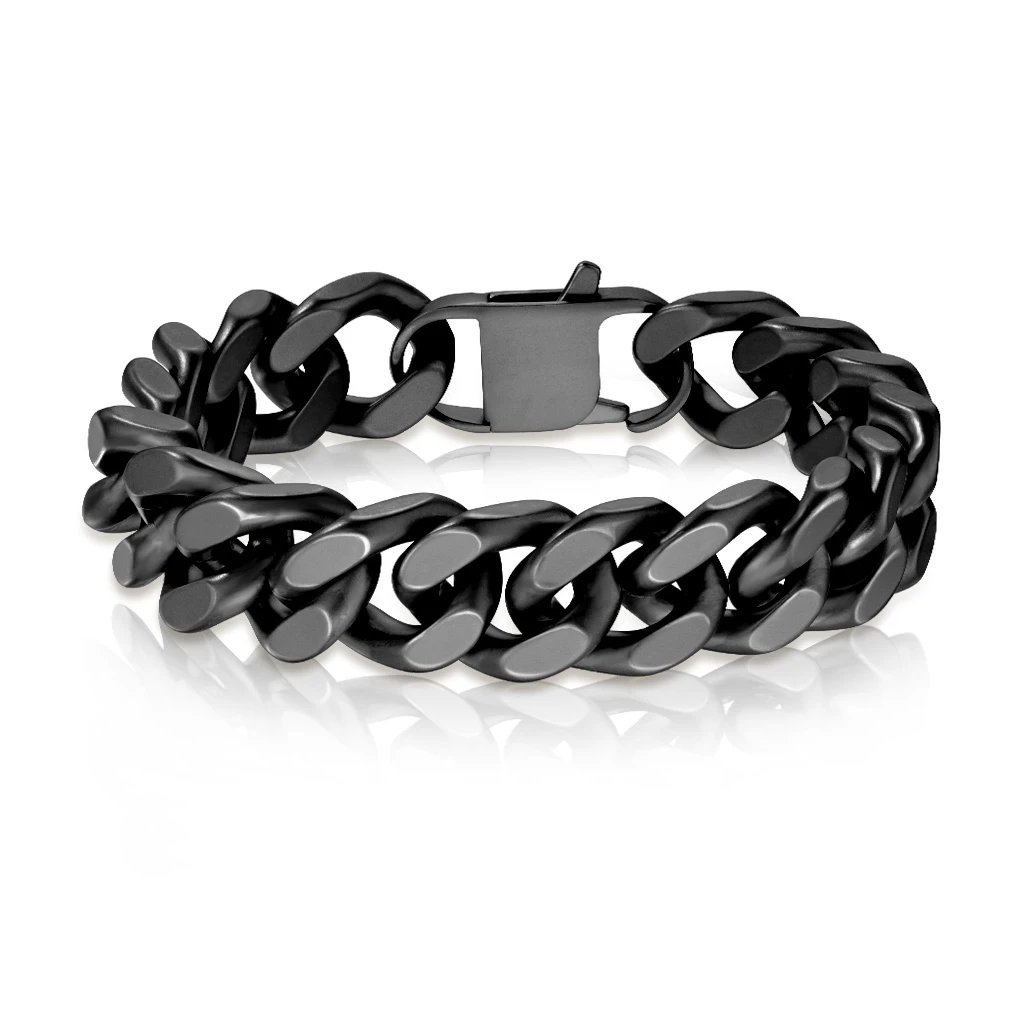 Náramek pro muže z chirurgické oceli. Matný povrch náramku je upravený technologií PVD na černou. Náramek je široký 12mm. Zapínání náramku je karabinové.
