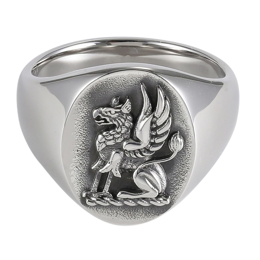 Pečetní prsten vyrobený z chirurgické oceli. Povrch prstenu je leštěný. Rozměr pečetidla 17x14mm. Obroučka prstenu je v nejužším bodě široká 3,0mm a postupně se rozšiřuje na 17mm.