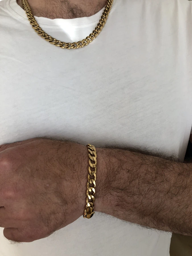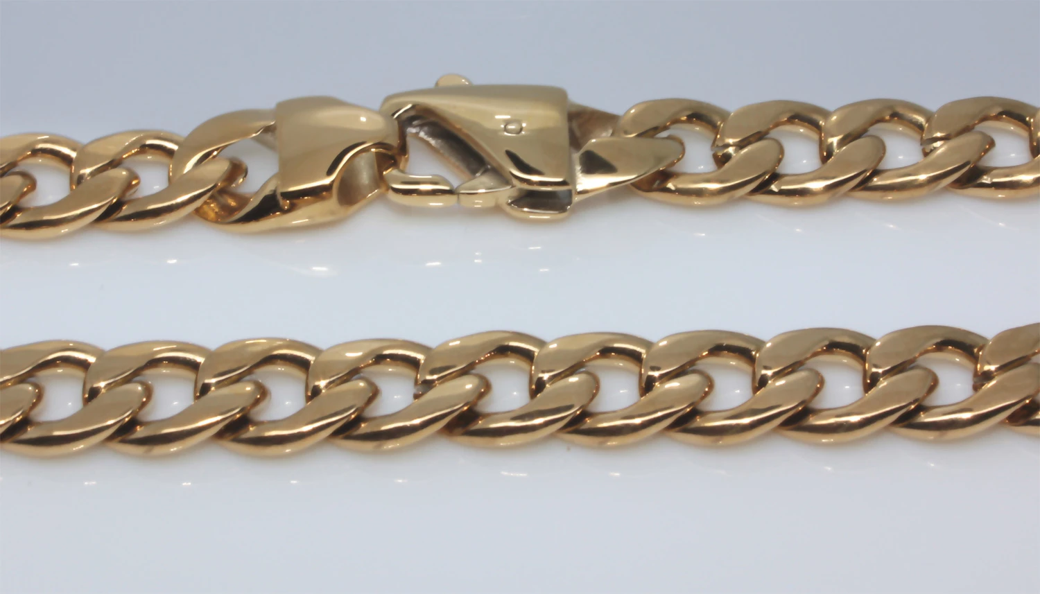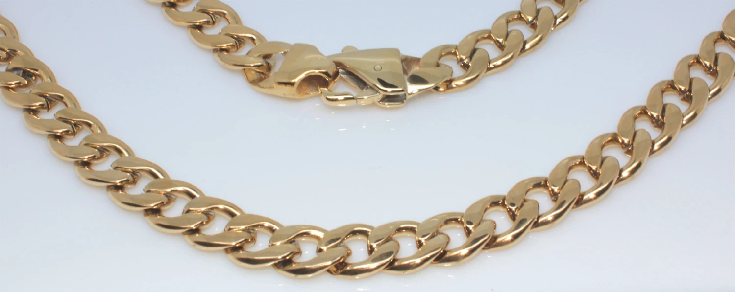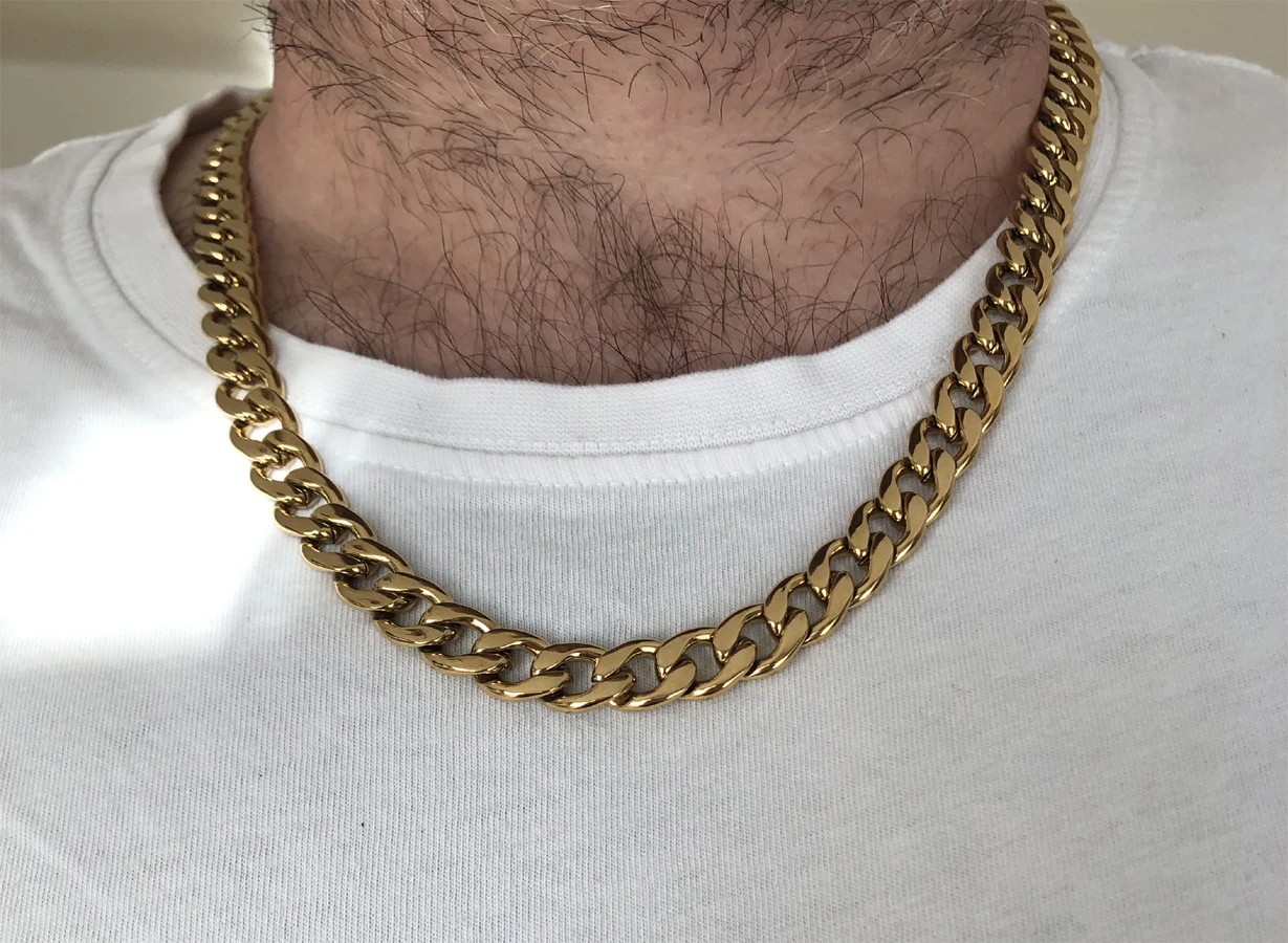 Pánský pozlacený řetízek z chirurgické oceli. Povrch řetízku je leštěný pozlacený technologií IP. Zapínání řetízku je karabinové. Řetízek je široký 10mm. Klasický pánský řetízek na krk vzor Pancr.