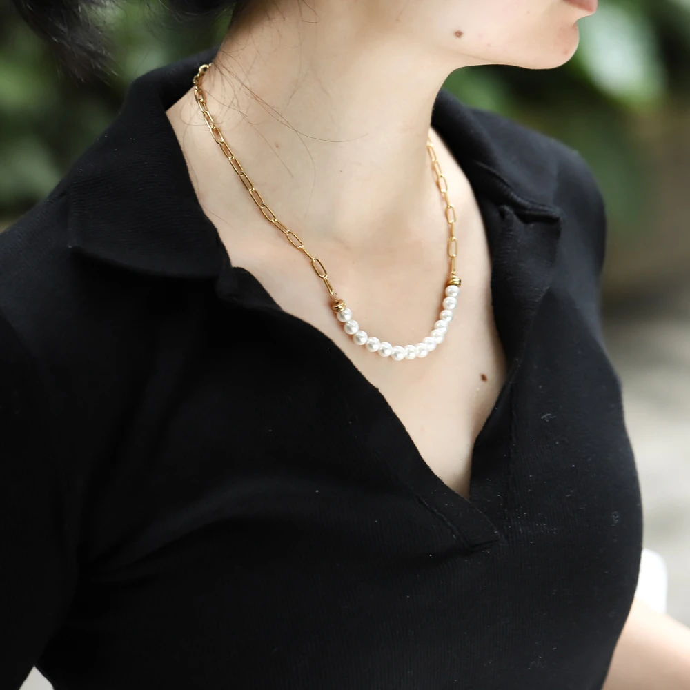 Toužíte po šperku, který snoubí v sobě eleganci a nadčasový styl s jemnou krásou perel? Náš perlový náhrdelník z chirurgické oceli je pro vás tou pravou volbou! Tento elegantní kousek je vyroben z kvalitní chirurgické oceli, která je odolná proti korozi a poškrábání, a je zdoben kultivovanými sladkovodními perlami v bílé barvě. Objednejte si svůj perlový náhrdelník z chirurgické oceli ještě dnes a obohaťte svůj styl o jedinečný a smysluplný šperk!