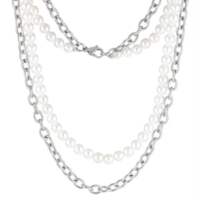 Elegantní náhrdelník spojující chladnou chirurgickou ocel s nadčasovou krásou přírodních perel. Chirurgická ocel dodává náhrdelníku moderní a sofistikovaný vzhled, přírodní perly dávají náhrdelníku nádech luxusu a romantiky, který obohatí váš každodenní outfit i speciální příležitosti. Tento perlový náhrdelník může být také perfektním dárkem pro Vaše blízké. Udělejte radost sobě, nebo svým blízkým ještě dnes a pořiďte si náš perlový náhrdelník.